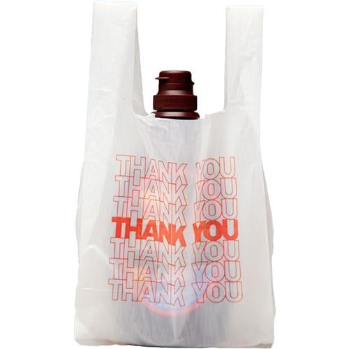 Las bolsas de compras vienen preimpresas con el mensaje "Gracias" en rojo brillante.