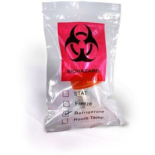 Bolsas para muestras de 3 paredes que se pueden volver a cerrar Biohazard - 6 x 9 x 2 mil