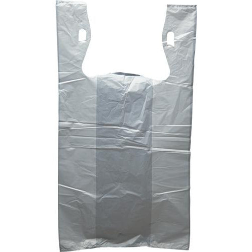 Bolsas tipo camiseta para comestibles - 11.5" x 6.5" x 21" - Blancas con orificios tipo barril
